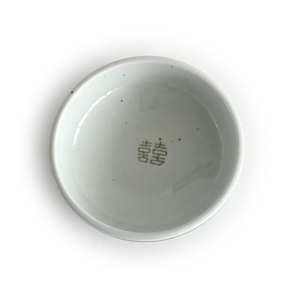 그릇 중앙에 새겨진 '囍(쌍희자)' 문양은 '기쁨이 두 배로 찾아온다'는