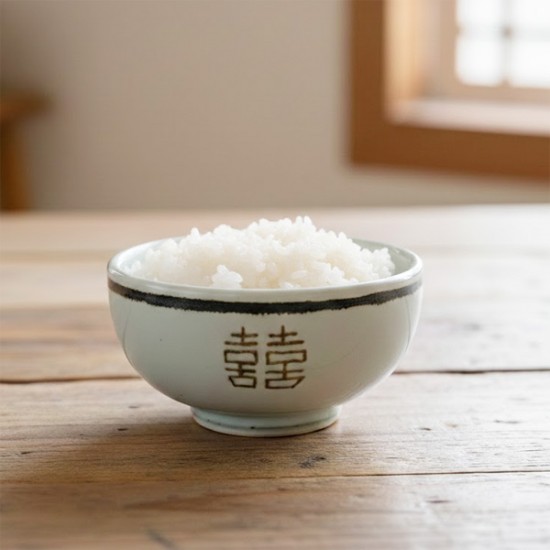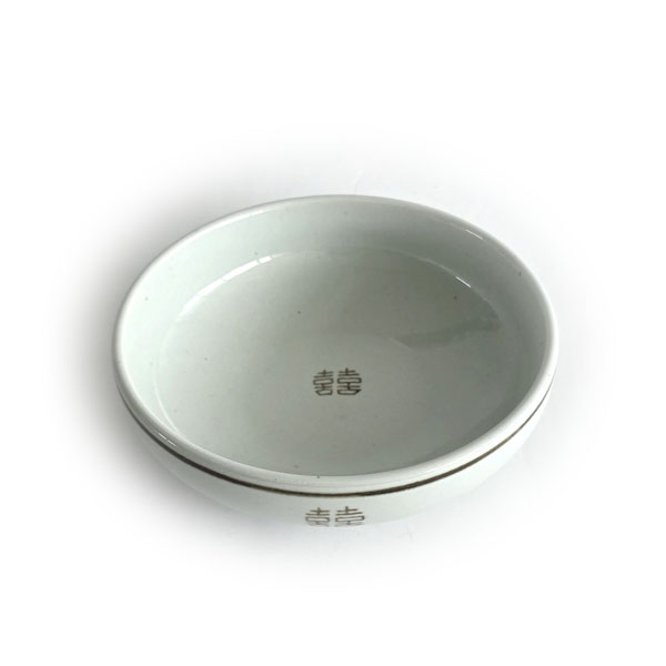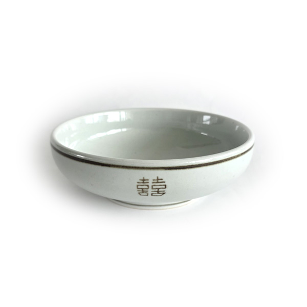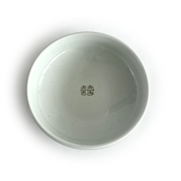 그릇 중앙에 새겨진 '囍(쌍희자)' 문양은 '기쁨이 두 배로 찾아온다'는