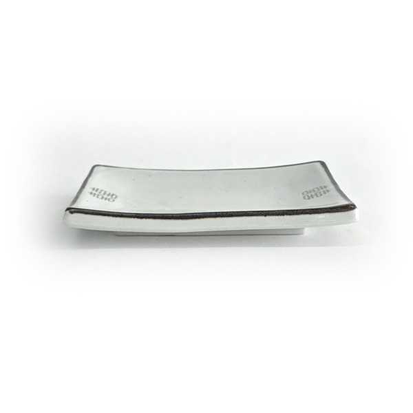 깔끔한 미색 광택과 테두리의 먹색 라인이 어우러진 이 사각 접시는